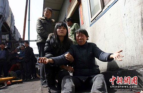 4月1日,“3·28”王家岭透水事故进入第5天,由于排水进度缓慢,搜救人员无法下井救援,等待中的矿工家属心急如焚。