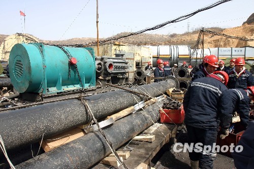 图为即将运送井下安装的排水设备。中新社发 张云 摄