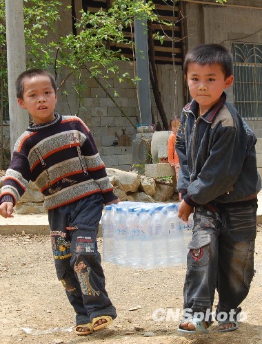 图:广西旱区儿童喜领爱心水(2)
