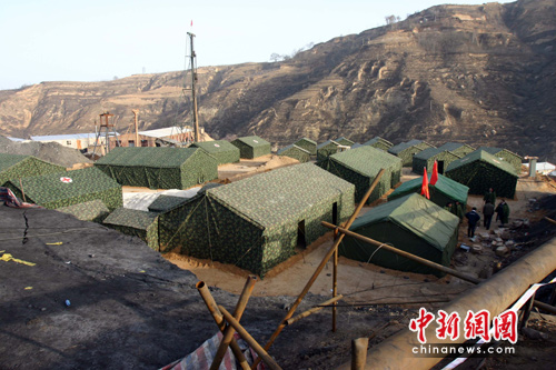 王家岭矿透水事故现场抢险帐篷已搭建(2)