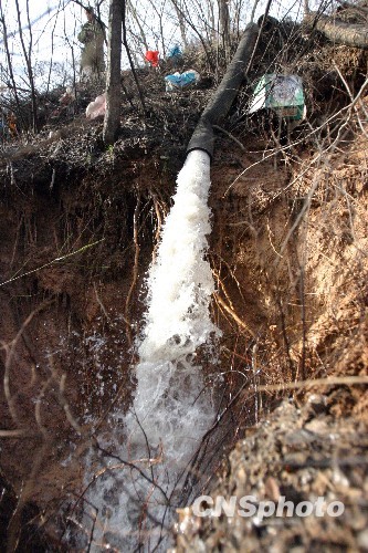 4月2日,华晋焦煤公司王家岭矿透水事故已经是第六天,抢险救援工作仍以排水为主。记者在排水管道出看到,已有三个排水管道在满负荷运行,即将增添新的8000瓦的大功率排水泵接入10寸排水管道。预计4月3日下午2点水位线将能降到最低,届时搜救人员便能步行进入搜救。中新社发 张云 摄