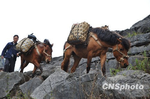 图:广西山村旱区人挑马驮翻山越岭运水(5)