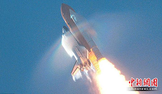 美国亚特兰蒂斯航天飞机穿越大气层时突破音障瞬间。