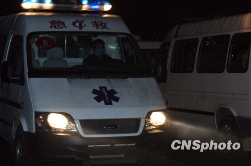 图为救护车将获救幸存者运送至医院。中新社发 高增平 摄