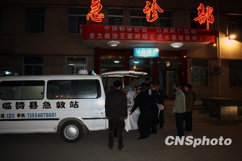6日早5时,山西铝厂职工医院医护人员就开始将重症病员抬上救护车。在该院救治的“3.28”透水事故获救工人中,有10名重症病人转运太原救治。中新社发 王卫平 摄