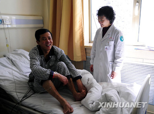 4月7日,龚长中正在与心理医师聊天。范敏达摄