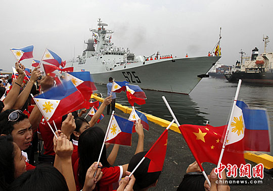 应菲律宾海军的邀请,中国海军525护航编队在完成亚丁湾海域护航任务后,于当地时间4月13日抵达菲律宾首都马尼拉,对菲律宾进行为期4天的友好访问。