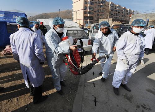 4月17日,疾控人员来到玉树州体育场受灾群众安置点准备开展防疫消毒工作。李紫恒 摄