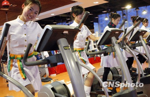 组图:世博会礼仪小姐上海忙“健身”(3)