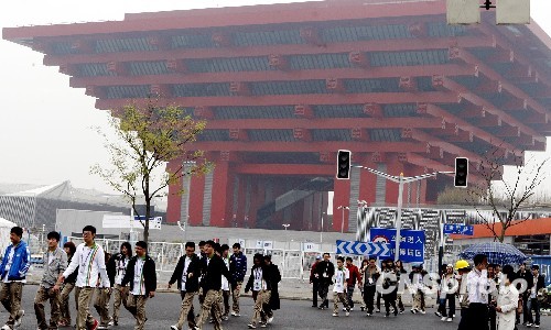 图为世博园区各国展馆装饰完工将迎接中外参观者。中新社发 钱兴强 摄