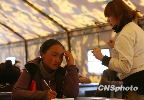 图为青海玉树灾区高考帐篷学校复课。中新社发 刘忠俊 摄