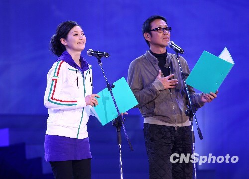 图为徐帆、陈道明深情朗诵诗歌。中新社发 李学仕 摄