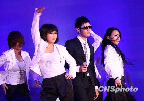 图为黄晓明劲歌热舞。中新社发 李学仕 摄