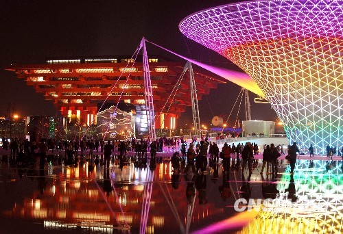 图:上海世博园亮灯流光溢彩(3)