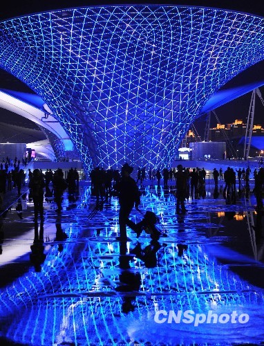 上海世博园亮灯流光溢彩。中新社发 远舟 摄
