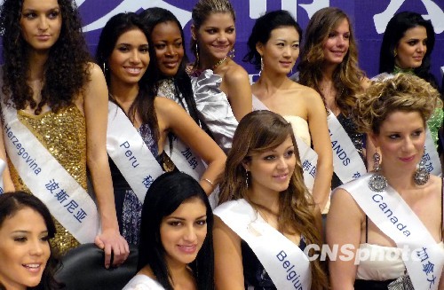 图为50位佳丽亮相张家界2010年度全球小姐国服总决赛新闻发布会。中新社发 钱兴强 摄
