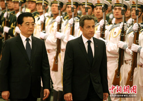 图:胡锦涛欢迎法国总统萨科奇访华(2)