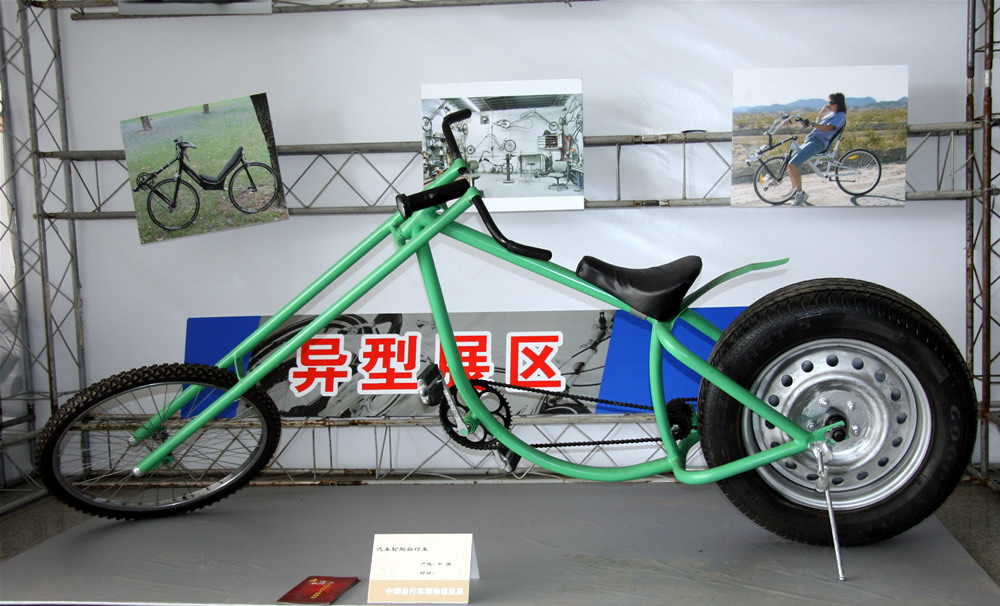 后轮为汽车轮胎的异形自行车。