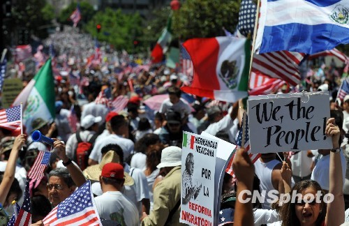 洛杉矶爆发近年来最大规模移民游行(5)