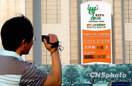 上海世博会倒计时牌“变脸”。中新社发 玉龙 摄