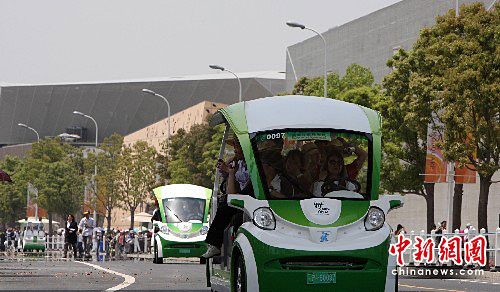 图为世博园区有几百辆零排放的燃料电池汽车向游客提供服务。中新社发 汤彦俊 摄