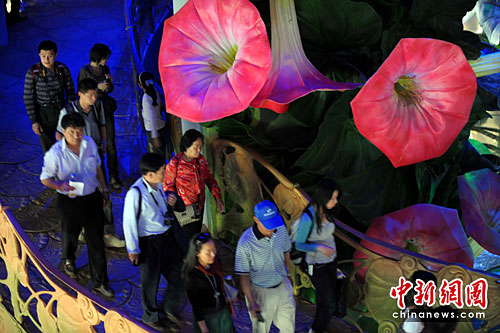 图:上海世博园俄罗斯国家馆喇叭花盛开