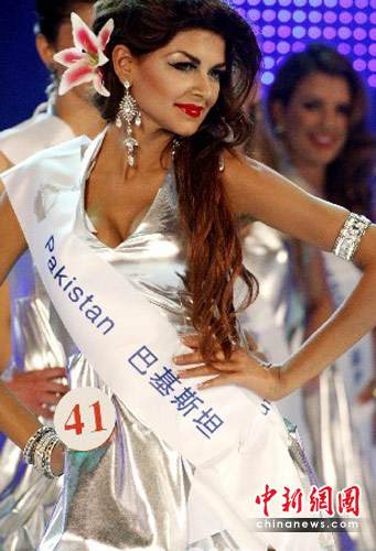 5月3日晚,2010年度全球小姐国服总决赛暨全球中国小姐总决赛在中国湖南张家界市举行,来自美国、加拿大、委内瑞拉、墨西哥、巴西、加纳、喀麦隆、英国、法国、韩国、泰国以及中国等56个国家的56位佳丽,分别展示礼服、泳装、晚装和国服,图为全球小姐各国佳丽总决赛展示风采。中新社发 钱兴强 摄