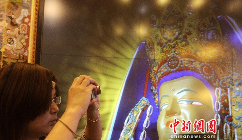 5月4日是上海世博会第四天,许多青睐神秘西藏的参观者,纷纷为精美绝伦的佛像拍照。中新社发 贾国荣 摄