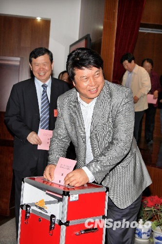 中国文联党组副书记、副主席覃志刚在会议选举中投票。中新社发 王保胜 摄