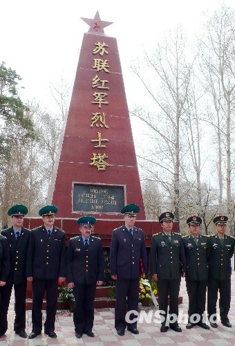 在俄卫国战争胜利65周年纪念日前夕,5月6日,中俄边防军人在中国黑河举行纪念卫国战争胜利65周年活动,共同缅怀在俄卫国战争和世界反法西斯战争中牺牲的先烈。