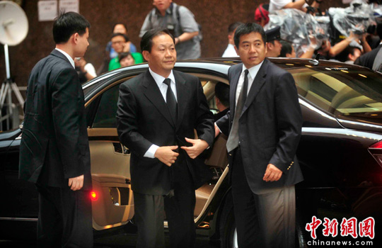 图为中央驻港联络办公室主任彭清华到灵堂向黄福荣致祭。中新社发 邓庆乐 摄