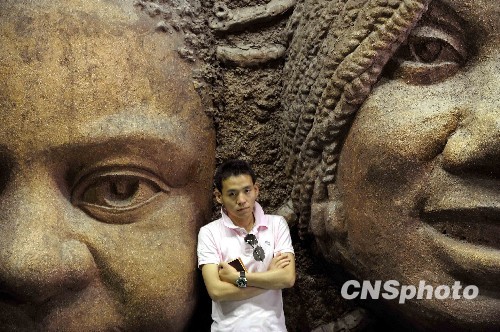 图为非洲联合馆里的笑脸雕像。中新社发 陈文 摄