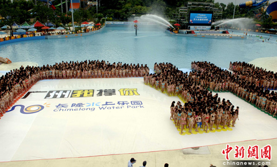 5月9日,2010长隆国际比基尼小姐大赛在广州拉开帷幕,近两千名美女齐聚广州长隆水上乐园,用独特的形式排成“广州”字样。中新社发 刘卫勇 摄