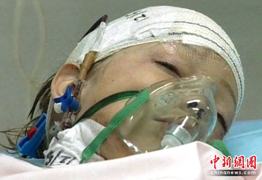 图为幸存的男童接受治疗。