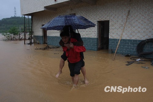 5月13日,湖南省娄底市娄星区石井乡斗光村暴雨使许多房屋被水淹。中新社发 郭国权 摄