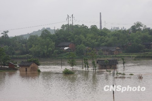 湖南省娄底市娄星区石井乡斗光村暴雨使许多房屋被水淹。中新社发 郭国权 摄