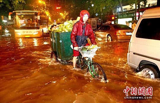 广州再遭雷暴雨袭击 市区又现“水浸街”(4)
