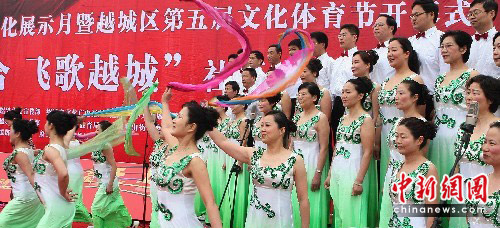 5月16日,社区合唱队正在赛歌。中新社发 袁云 摄