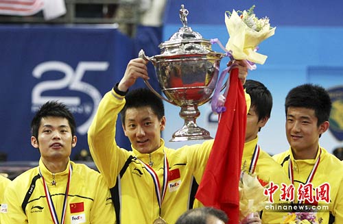 中国男子羽毛球队5月16日在马来西亚布特拉体育馆举行的汤姆斯杯决赛中,凭借队员的出色表现,3比0完胜劲旅印尼队,连续第四次赢得了汤姆斯杯。这也是中国队历史上第八次夺得汤姆斯杯。