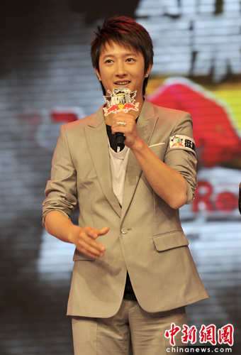 图为韩庚神秘出席发布会,回归内地并投递作品。中新网记者 金硕 摄