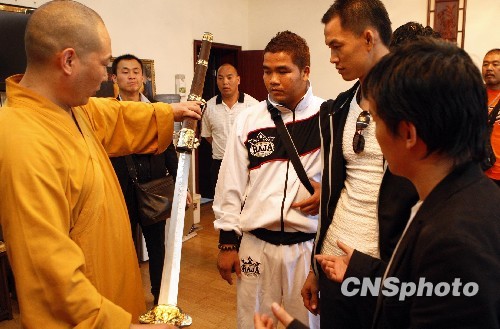 组图:世界泰拳王拜访少林寺 获赠宝剑