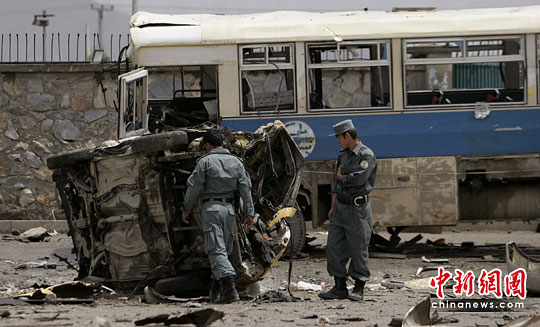 图为阿富汗喀布尔汽车炸弹爆炸现场一片狼藉。