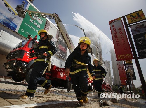 河南大型消防演练构筑消防安全“防火墙”(2)