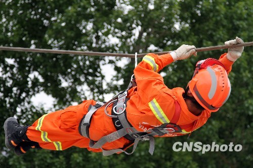 图为官兵们5月18日在训练攀岩横渡。中新社发 徐长安 摄
