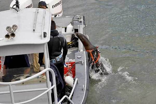 5月18日,隶属于美国海军的海狮海豚特种部队在旧金山举行的“金色卫士”演习中亮相。目前美国海军正在培训28只海狮、80多条海豚和一条虎鲸,主要任务是执行水下排雷任务,甚至在水下制服恐怖分子。