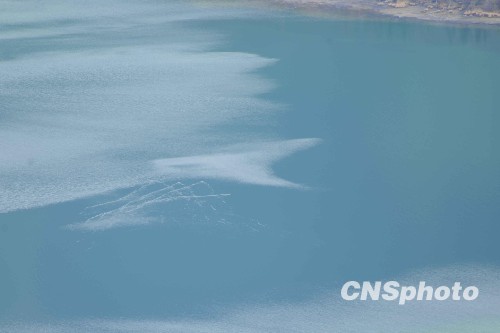 这是5月23日上午10时拍摄到的喀纳斯湖不明水生物。中新社发 康剑刘新海 摄