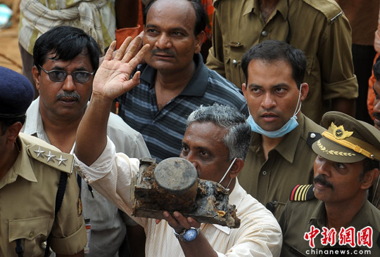 图为印度门格洛尔一名印度民航官员展示失事印度客机的另一个“黑匣子”——“飞行数据记录仪”。