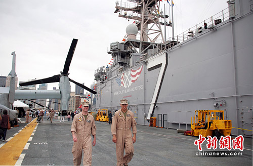 5月27日,停靠在纽约哈德逊河畔的美国海军著名两栖攻击舰“琉璜岛”号向民众免费开放一天,许多民众得以登舰参观,这是今年纽约舰队周的一项“重头戏”。纽约舰队周是一年一度的美国水手大集会,每年这个时候,身着水兵服的美国军人将出现在纽约各旅游景点,成为纽约市一大景观。今年是“琉璜岛”号两栖攻击舰第四次参加纽约舰队周。