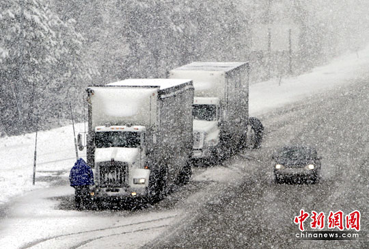 5月27日,一场突如其来的大雪袭击了美国加利福尼亚州。这场大雪给交通带来了不便,众多行驶在高速公路上的司机纷纷下车在车轮上加装防滑链,以防车轮打滑。