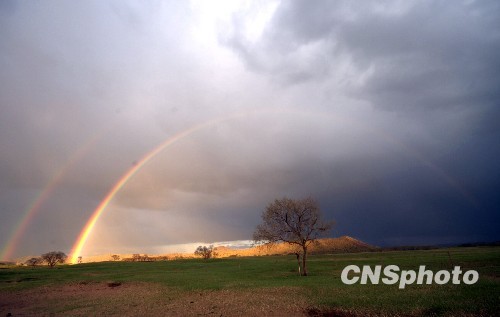 图:内蒙古草原出现罕见“双彩虹”奇观(2)